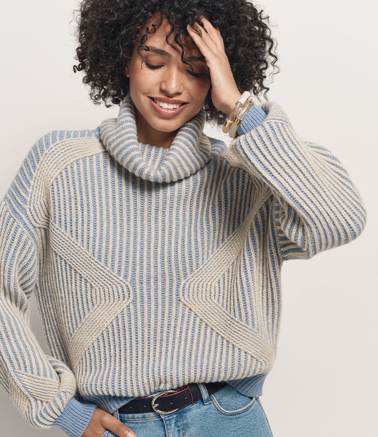 Le froid n'est pas une option. Pour sortir ou rester au chaud, superposez ADA sur vos épaules et votre dos. Entre col et cape, cet accessoire hybride en tricot bleu saphir est une pièce incontournable du dressing hivernal.