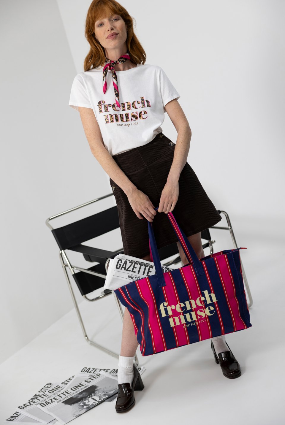 Symbole d’une féminité libre et lumineuse, la French Muse incarne l’esprit de cette capsule exclusive signée One Step.