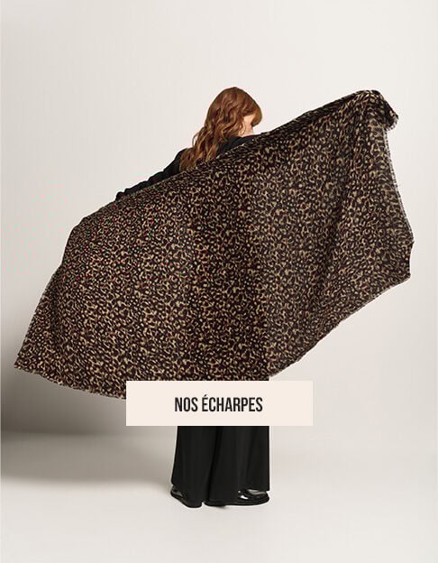 PADEN - Pantalon noir panne de velours imprimé léopard