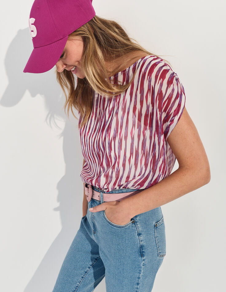 CELINA est la réponse à vos envies de légèreté, de fraîcheur. En voile, il s'essaie à l'imprimé rayures floues exclusif, sur un sous-top uni, qui maîtrise parfaitement les jeux de transparence. Appréciez le détail des épaules, avec coulisses à moduler, à froncer, à nouer.