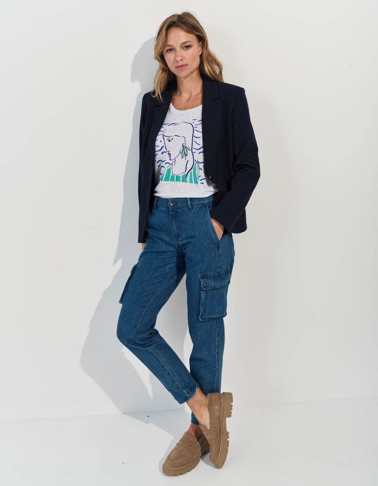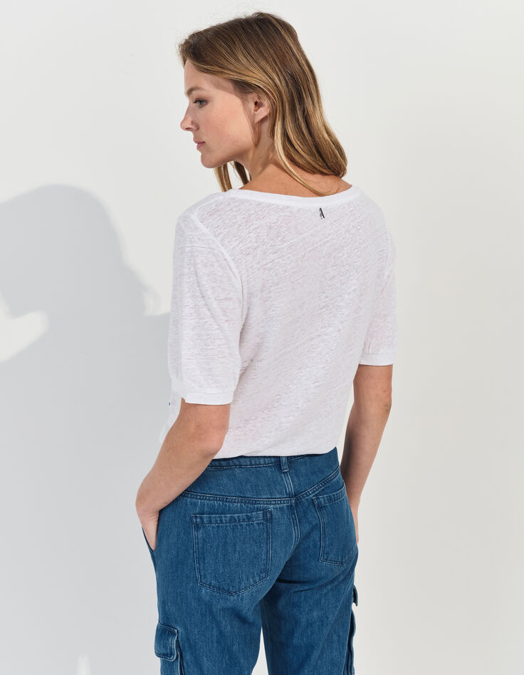 - MALONE - T-shirt blanc maille lin danseuse crayonné