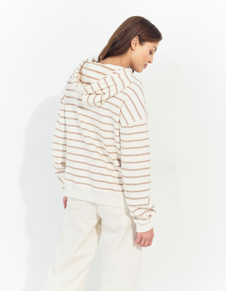 MANORI - Sweat écru à capuche rayé danseuse dorée