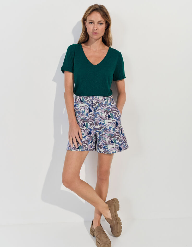 Mix de lin et Lyocell® pour le T-shirt MARINGA, plébiscité pour son confort au porté. Les épaules sont soulignées de bandes dentelle ton sur ton, et les manches courtes finalisées par des revers fixes. Coloris jungle green, un vert foncé, il apporte une touche de couleur vive à la tenue.