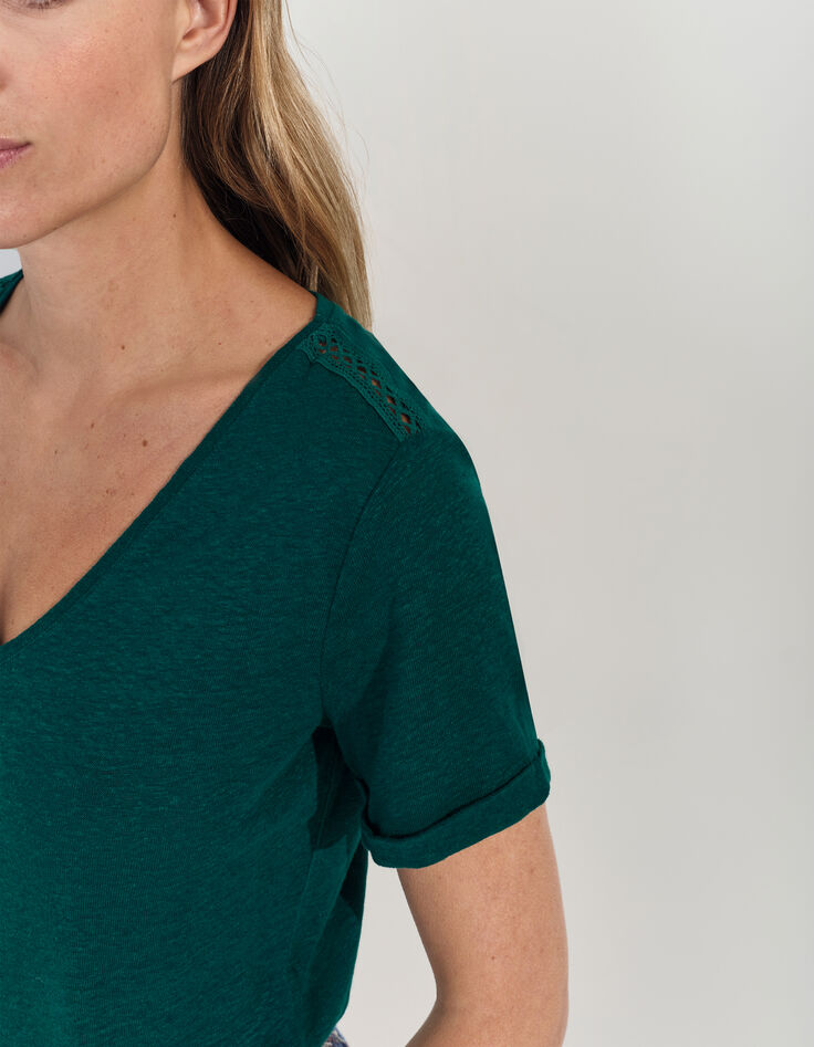 - MARINGA - T-shirt vert détails dentelle