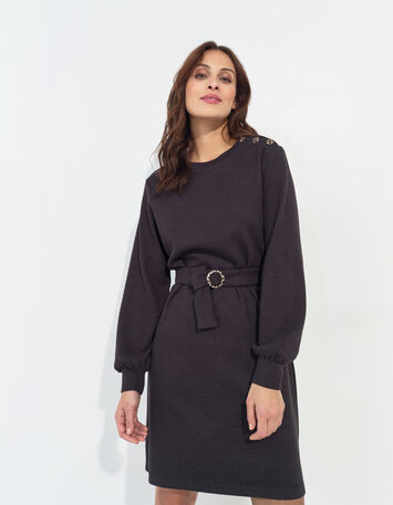 - RAVENA - Robe sweat gris foncé maille côtelée