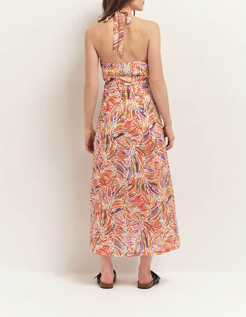 RECY - Robe midi corail dos-nu à imprimé flore arty