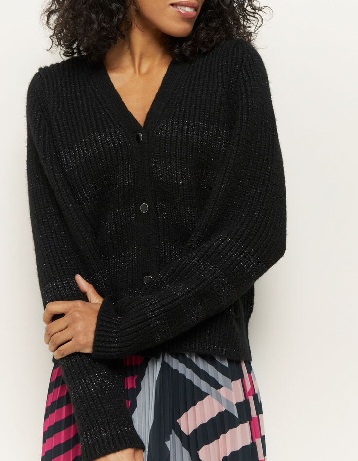 - TRUDY - Cardigan noir en tricot lurex avec rayures